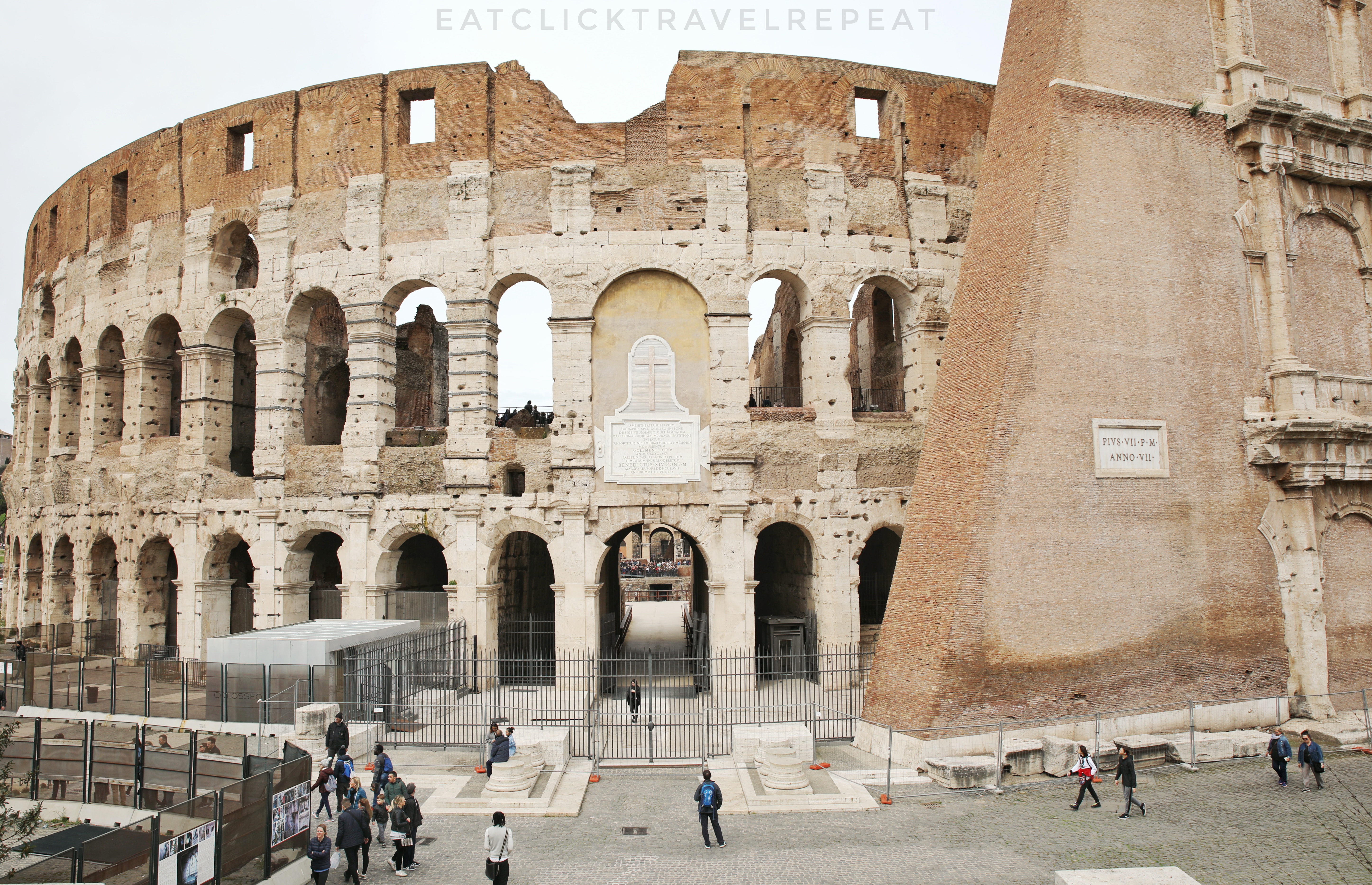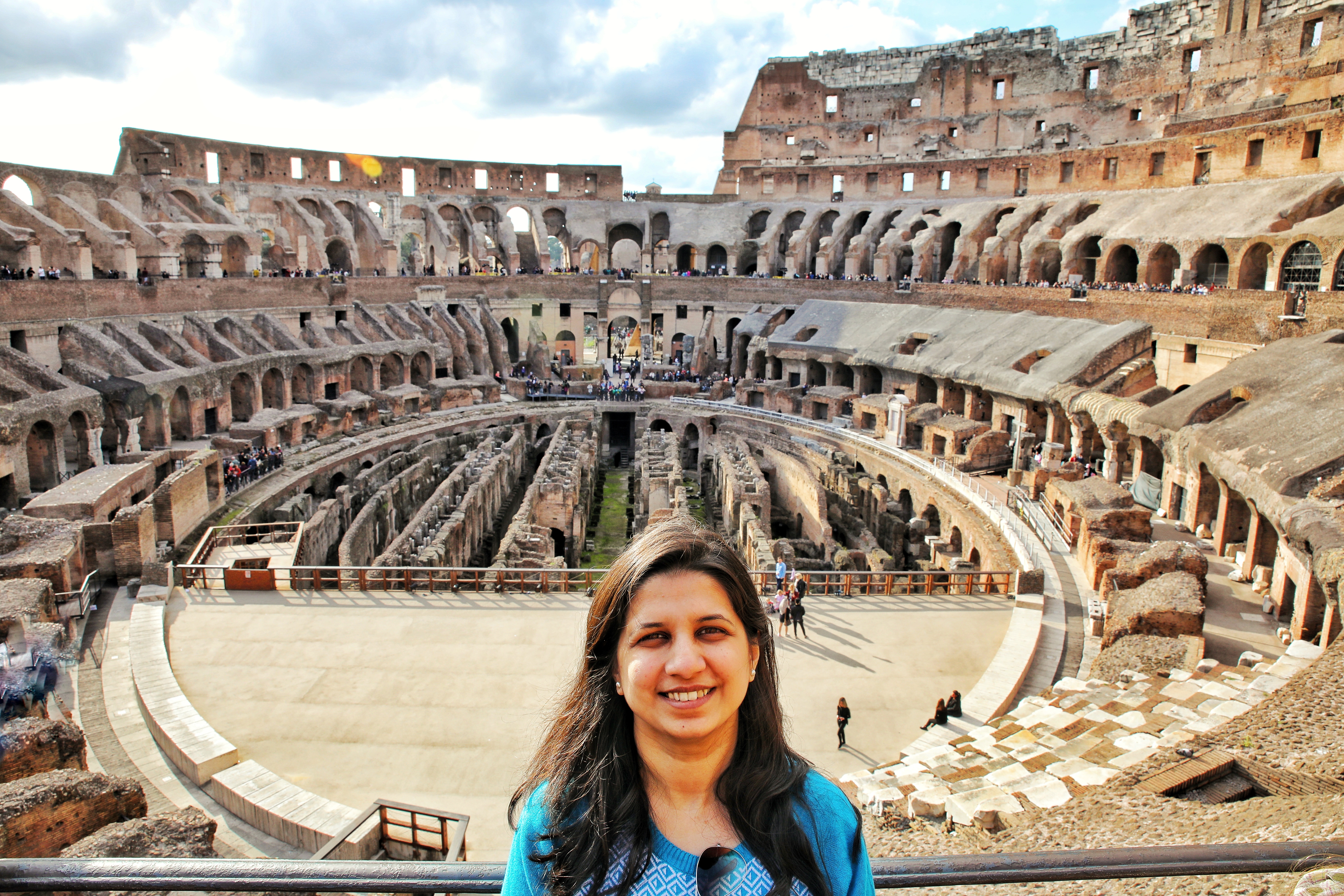 Today Colosseum is visited by thousands of tourists all around the year. We saw mainly American, Asian and South American tourists. Honestly, one has to constantly move and accommodate others. Everyone is busy taking pictures, generally, large groups are moving around. Most of the large groups are led by tour managers with their private mikes and all their group members are listening to their stories in their preferred language through the headphones. One has to constantly play a dodge game by not getting caught in between these large groups. Usually, these group lines and ROMA pass holders get access through the same gate.  We were constantly clicking our pictures trying to avoid large groups.
