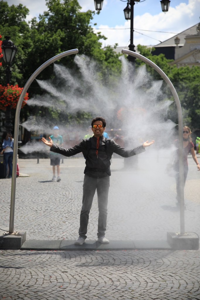 Then we walked towards the Ganymede’s fountain. It has figures from ancient mythology. We ended up enjoying the vibe around the fountain. As we were roaming during the summer, mist showers were highly welcomed by the tourists.