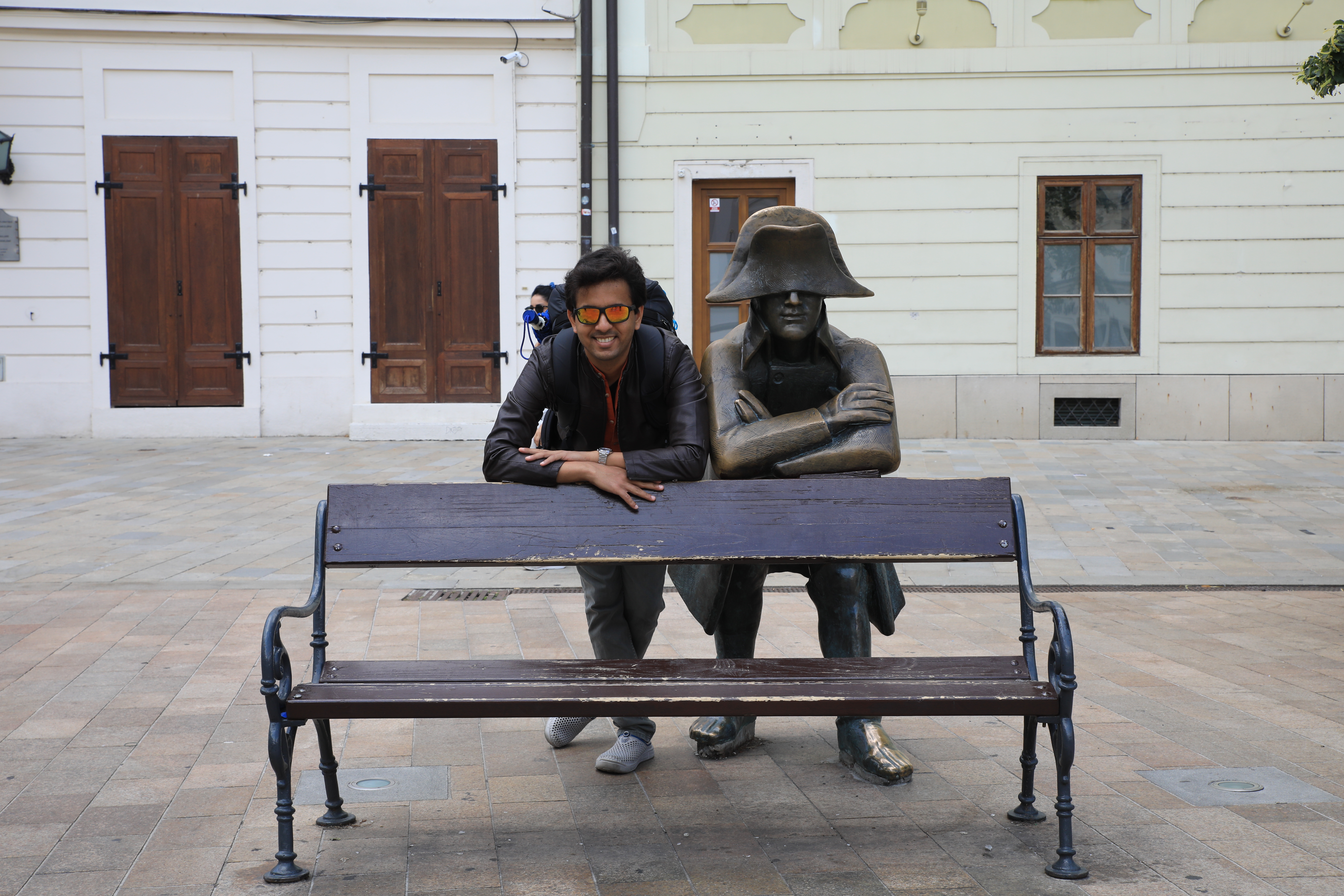 Next stop was heading towards the main square. There are two-three spots to be seen around the main square. One being the Napolean’s Army soldier.  The story behind this statue is quite romantic and positive. It’s said that when Napolean’s army was passing through Bratislava, this soldier named Hubert was part of the army. Hubert fell in love with a local girl in Bratislava, he stayed back in the city and later even became the producer of wine.
