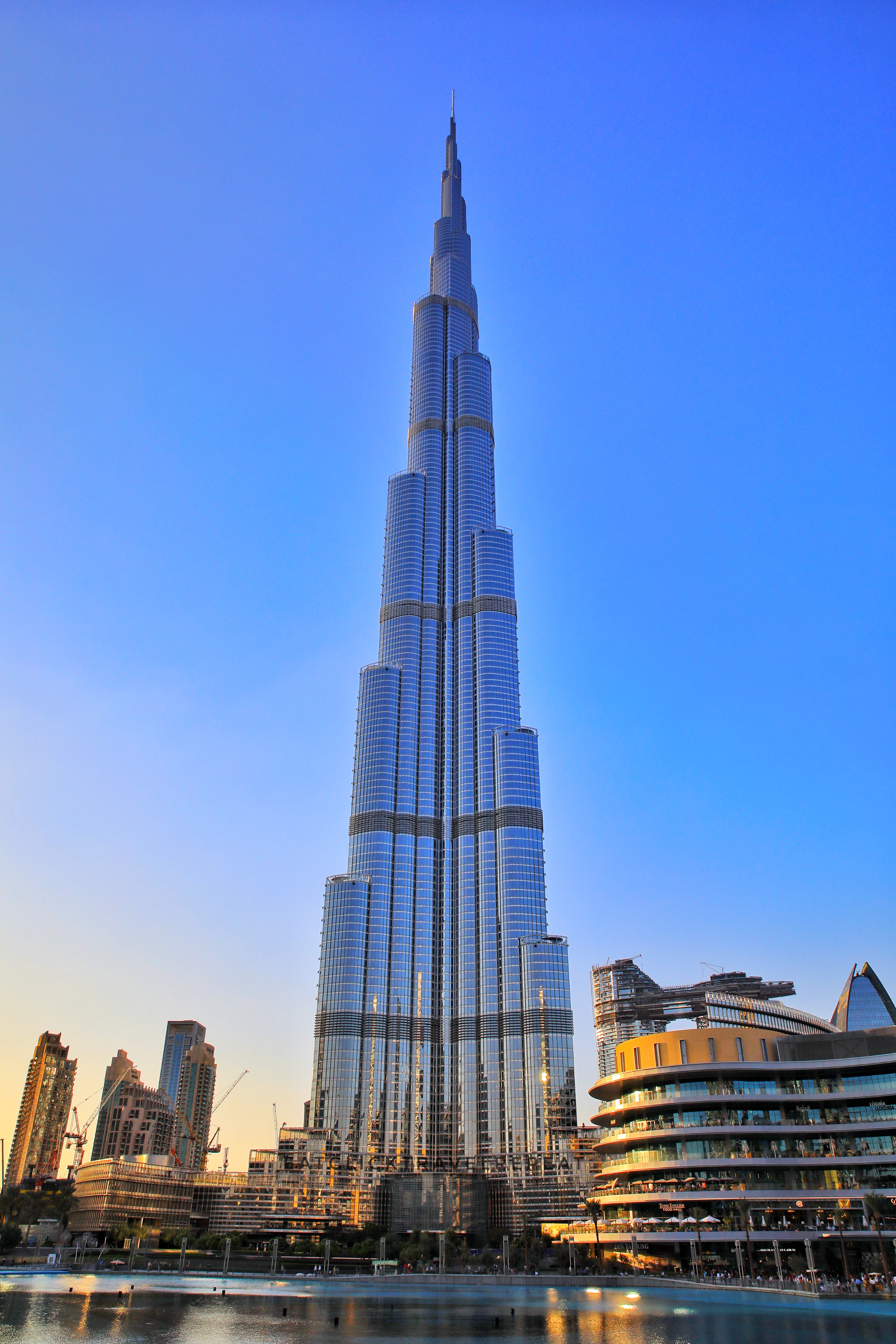 Tallest building in the world. Measuring at 830mt till the top. Easy way to remember the height is that it is nearly as tall as a kilometer. Burj Khalifa has 163 floors above the ground and only 1 below. It took 6 years for the building to be constructed and was open in January 2010. It took 22 million man hours for construction.