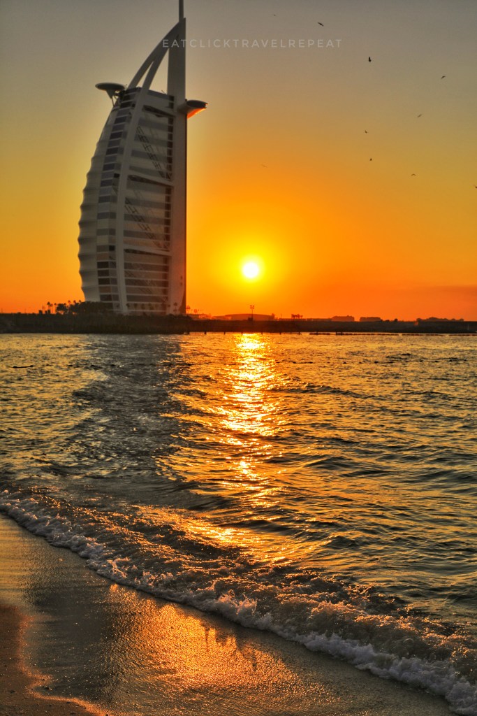 We love beaches and decided to visit Jumeirah Public beach exclusively for the sunset views. We reached the beach quite early evening and secured a perfect place. We loved staring at Burj Al Arab during sunset.