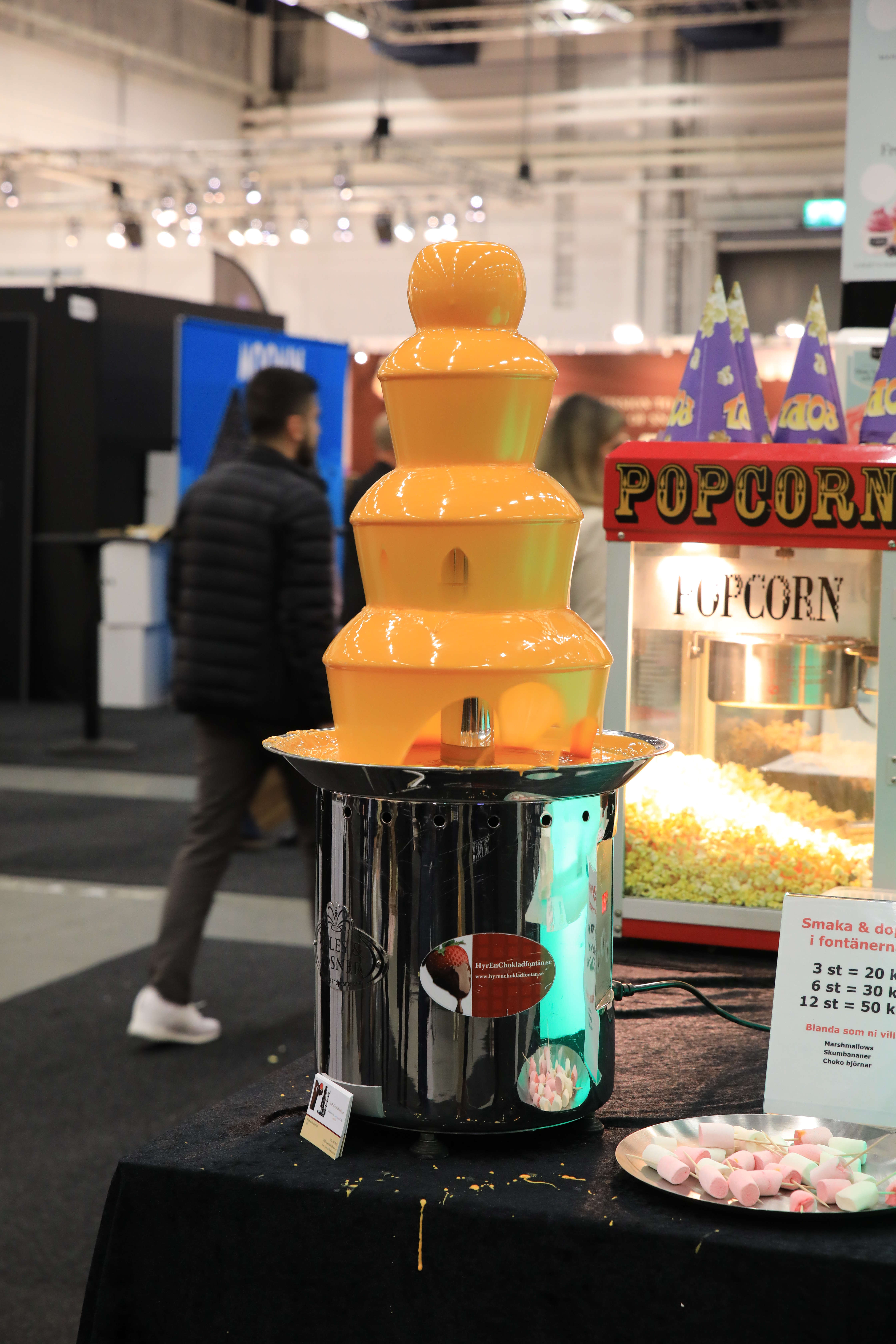 Another stall which is my all time favorite are the ones displaying chocolate fountains. Usually plain chocolate and white chocolate flavored fountains are displayed but was happy to see orange and pistachio flavored chocolate fountain this year. They not only sell the marshmallows dipped in the fountain but also the fountain itself as well.
