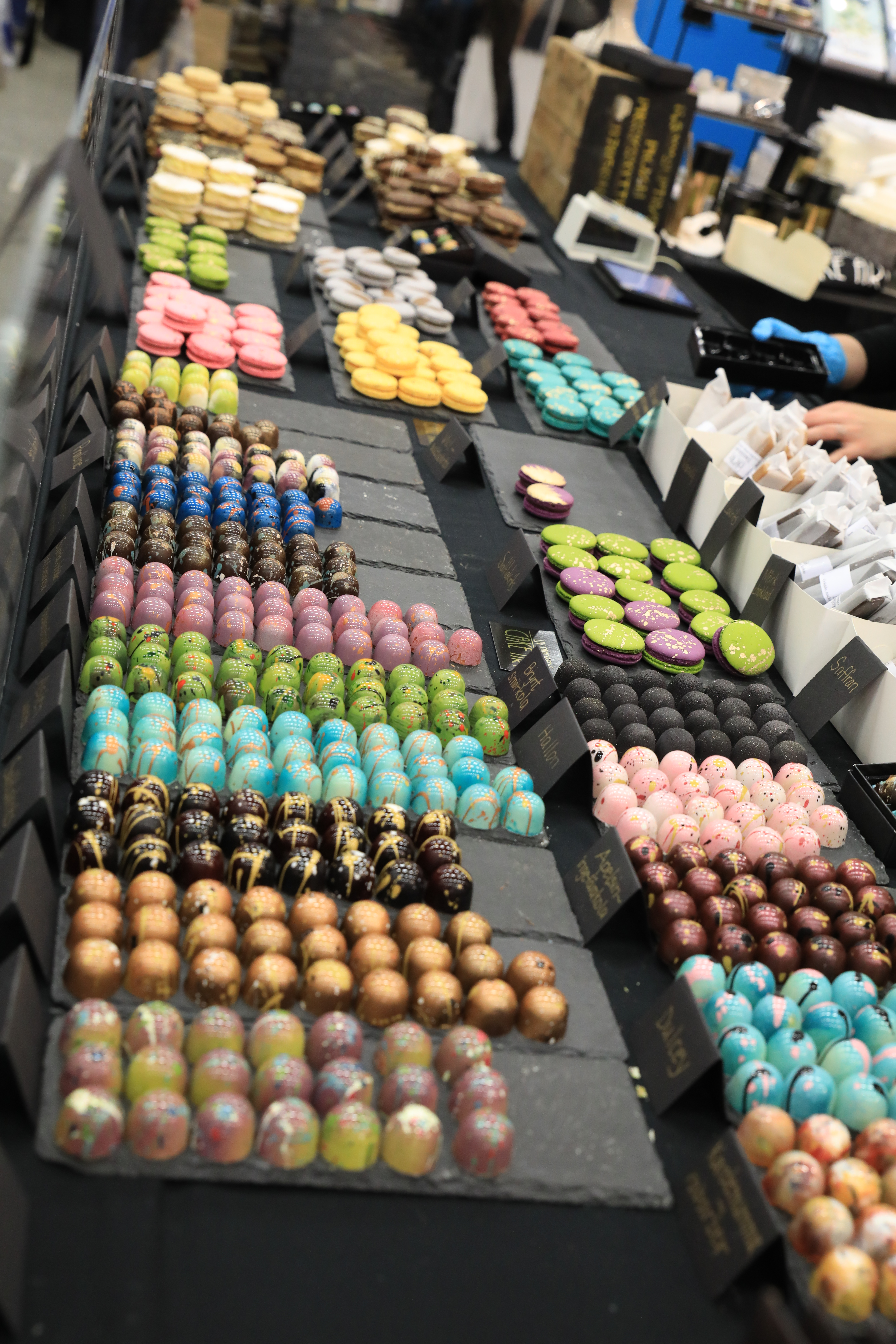 This year as expected her stall was again crowded as she really makes her pralines stand out using unique colour combinations, glaze and flavour combinations. Be it macaroons with golden brush strokes on them or skull shaped multicolored pralines, there is lot to enjoy visually! Enjoy some pictures from her stall.