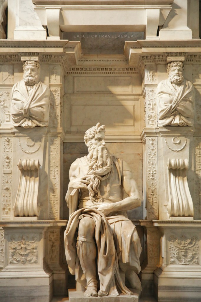What’s so special? What I enjoyed in this Basilica were the 18th century frescos and Michelangelo’s tomb of Julius II and the famous statue of Moses. One must notice the horns on the statue of Moses. These horns were made by Michelangelo because of a misinterpretation of Moses description in some scriptures. Nevertheless, the statue became famous as Michelangelo’s Moses.