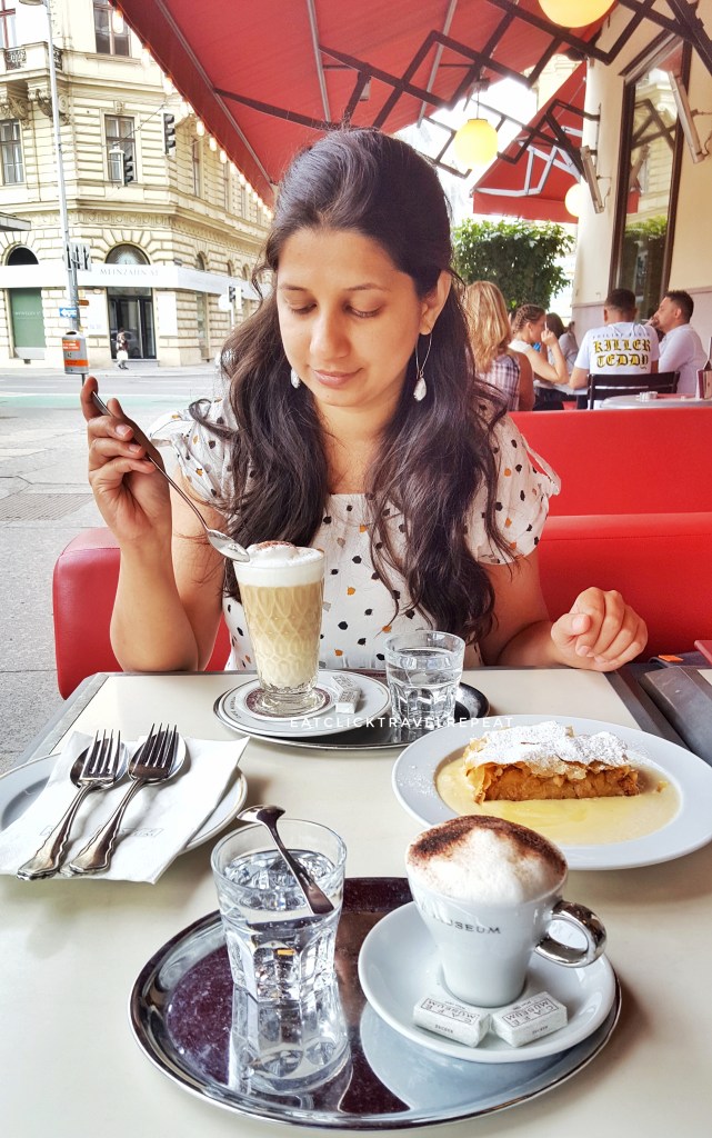 Apple strudel is the traditional yet popular pastry in Austria. Even though apple flavour is most famous, strudels can be of other flavours as well. Cafe museum is relatively famous cafe with seating arrangements indoor as well as outside. Since we were visiting in summer, we chose to