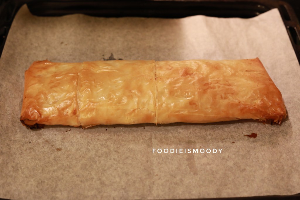 Preheat the oven at 200 degrees Celsius and line a baking tray with parchment or baking paper. Ensure the filo sheets and butter is at room temperature.