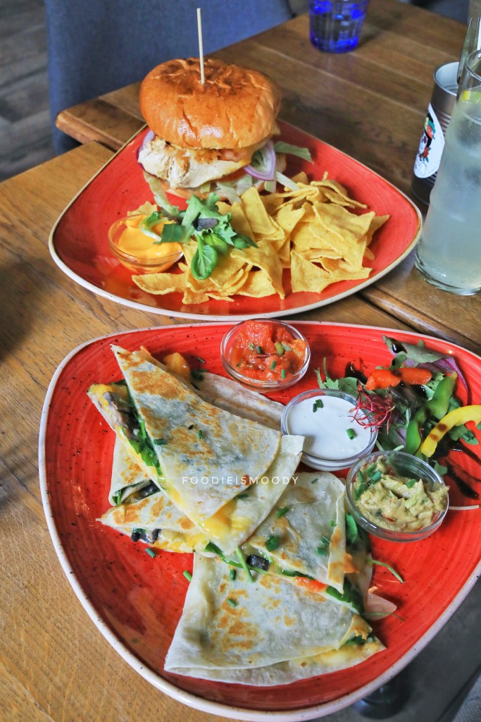 The food and the menu was very tempting and we had an overall wonderful experience. Servers were friendly and taste as well appearance of food was perfect for photos and stomach. We had vegetarian quesedilas and a chicken burger. Both the dishes as seen in the picture were accompanied with toppings and extra sauces.