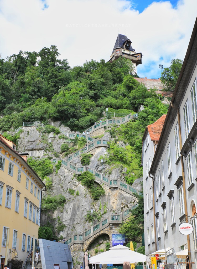 One of the most well known tourist location in Graz is Schlossberg. It is a castle hill with beautiful views of the city.