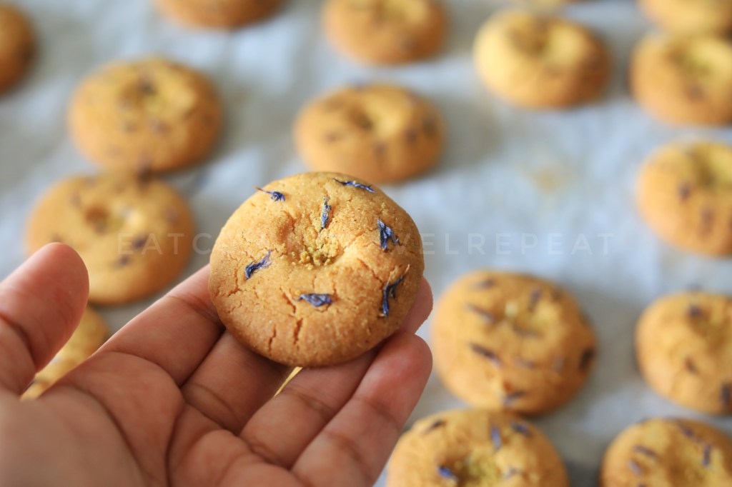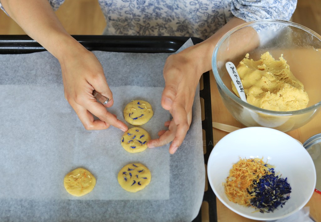 It took me more than 15- 20 minutes to complete all the cookies. I was adding some yellow petals of another edible flowers, but decided to not continue as there were not giving me a beautiful contrast that I wished.
