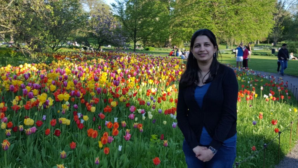 Tulips and me!! A stranger offered to click a picture for me, I guess they could see how happy I was.