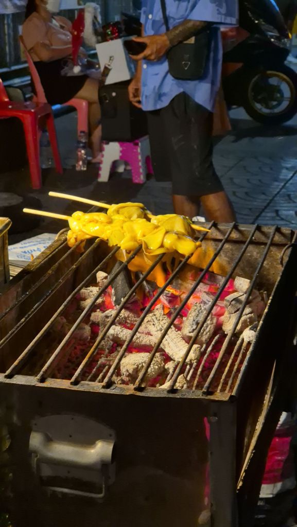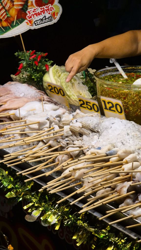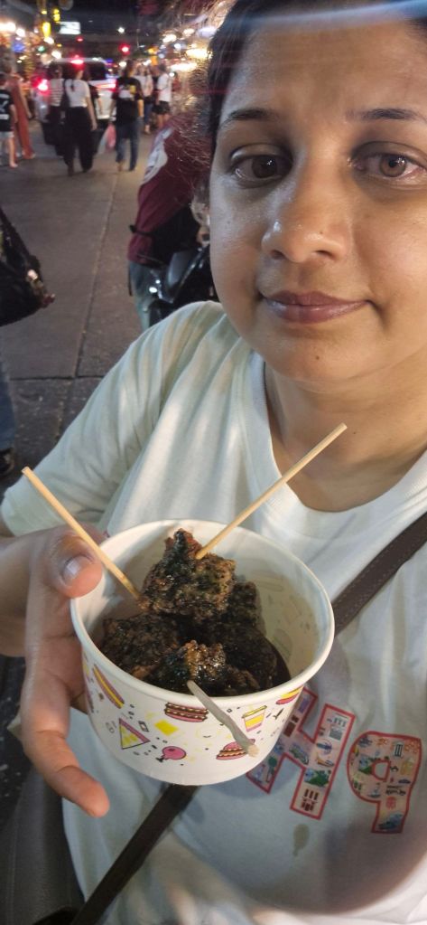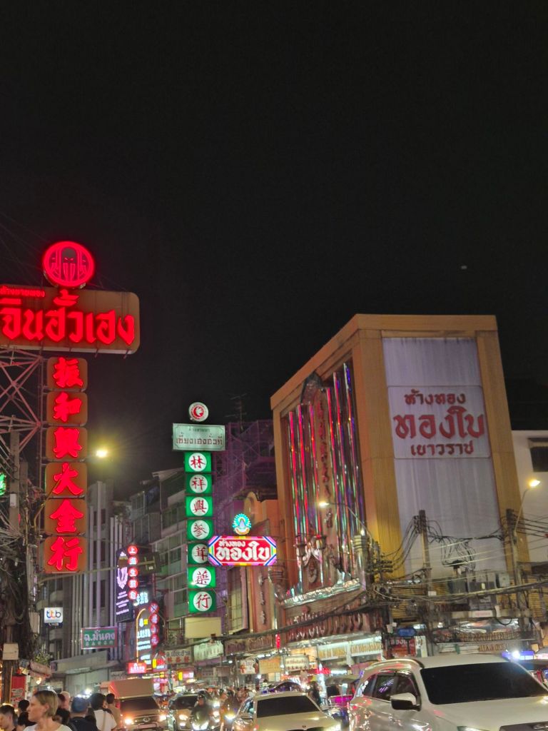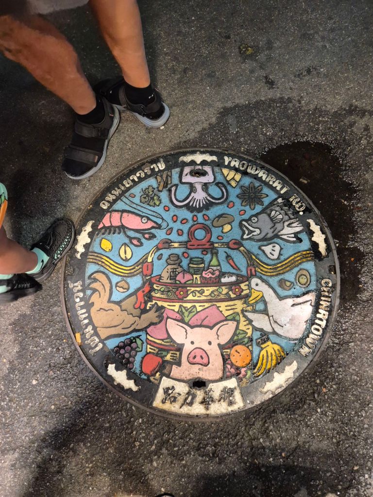 1.Yaowarat Road in Bangkok 2.Huge Chinese signboards to assure you are in Chinatown 3.Powerful lights and engines installed on some of these tuktuks, making extra noise on these roads to show their presence. Haggle with Tuktuk driver, we tried.. We ordered a Taxi in half price to what the Tuktuk was charging. They know it, but they overcharge and people pay 😁 4.The only cart we saw in our walk selling the insects. Infact a tour guide stopped and showed people this cart as well. We felt how annoying for the owner, where people stop only to click pictures. If course, we didn’t dare to buy as well 😂 5.We ate at the LanZhou Noodles, air conditioned small restaurant who also had chef making live noodles 🍴🍜 6. As I said in my stories, fruit stalls everywhere, they are more popular than anything else we have seen 7.I also ate delicious vegetarian fried chive cakes for hardly 40baht, quite filling too! 8. A side lane vibe in China town was stronger than main Street, small hawkers, small tables and chairs to sit.. 9.Soup noodles that Kapil ate and 10. Fried noodles with egg which I and daughter shared 10.colorful drainage lids everywhere 11 – 14. Oysters, dimsums, squds, chestnuts, octopuses, squid eggs, Chinese lanterns, a person a dragon costume and very heavy hot oily air in this street.. Everything reminding you are in CHINATOWN! 🔥♨️🍜 #thailand #bangkok https://www.instagram.com/p/DStPuTdD6sMFthXrf__TnYmqZbBe9sHyCAI0Tk0/?igsh=ZGxkdTNpMmEyNDhm